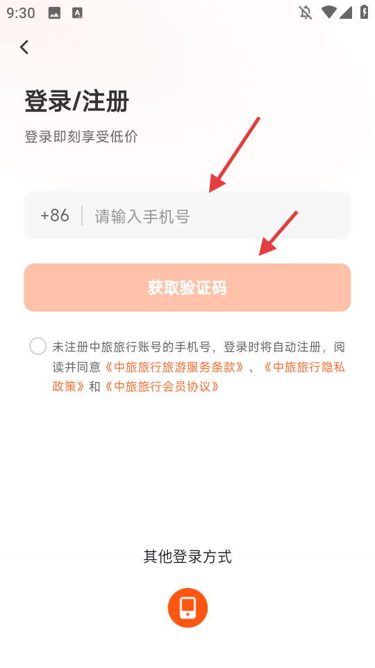 3、输入【手机号】,点击【获取验证码】。