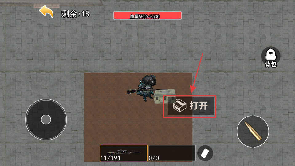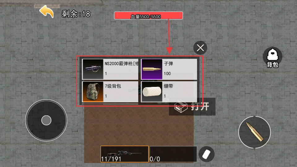 3、在战场中发现箱子时点击【打开】按钮获取物资,及时补充弹药和装备维持基本战力。