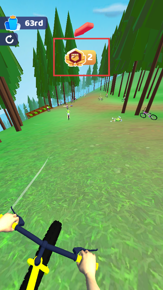 2、比赛中通过撞击其他对手提升排名,增强骑行能力,争取更好表现。