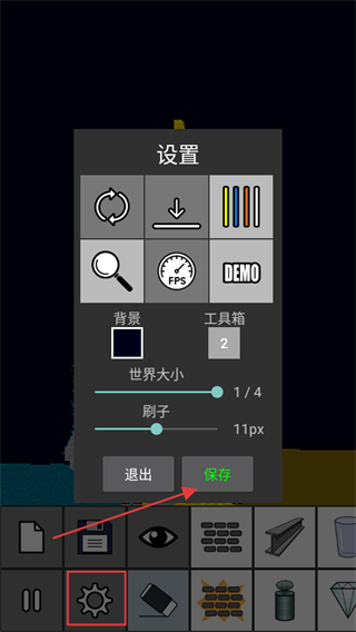 2、在设置界面中,可调整背景、世界大小、刷子尺寸等参数,创作完成后点击【保存】。