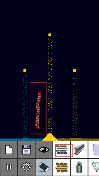 4、选择【砖块】材料,搭建砖块结构,观察不同材料在沙盒中的物理效果和视觉呈现。