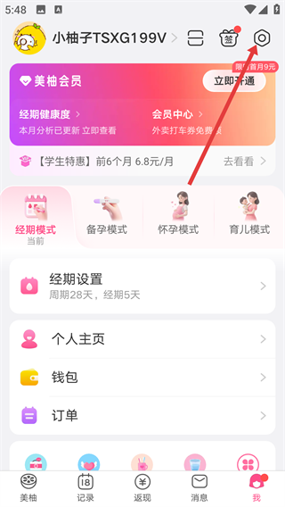 2、在美柚个人页面,点击右上角进入设置界面,离目标又近一步啦。