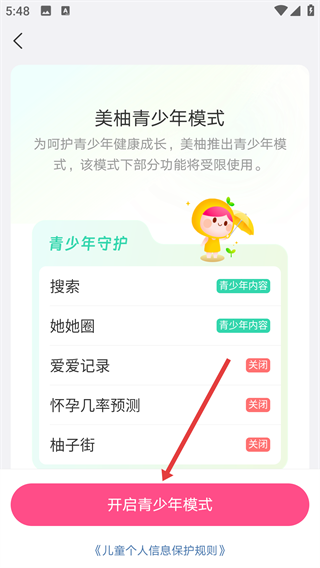 4、进入青少年模式页面后,点击【开启青少年模式】按钮,即可成功开启呢。