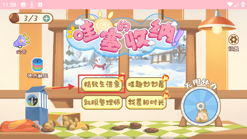 1、选择【精致生活家】的模块进入关卡,开启收纳挑战,感受治愈画风带来的轻松整理乐趣与满足感。