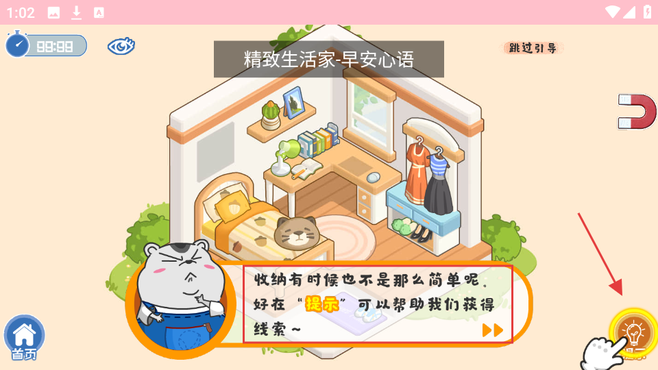 4、遇到收纳难题时使用界面的【提示】功能获取线索,轻松解决各类复杂的收纳布局问题。