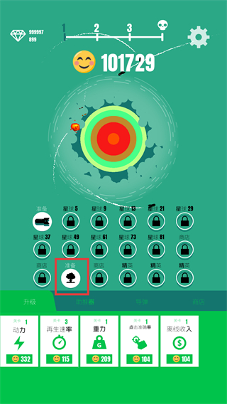 3、进入新的星球后,点击升级方框内属性,为后续攻击进行强化。