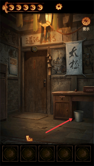 3、点击红色箭头指向的垃圾桶,查看其中是否有与解谜相关的物品或线索。