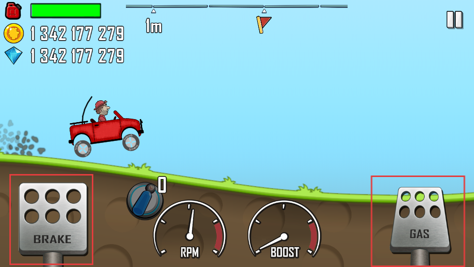2、驾驶时交替按压【GAS】油门和【BRAKE】刹车按钮,控制车辆平衡以避免翻车并持续前进。