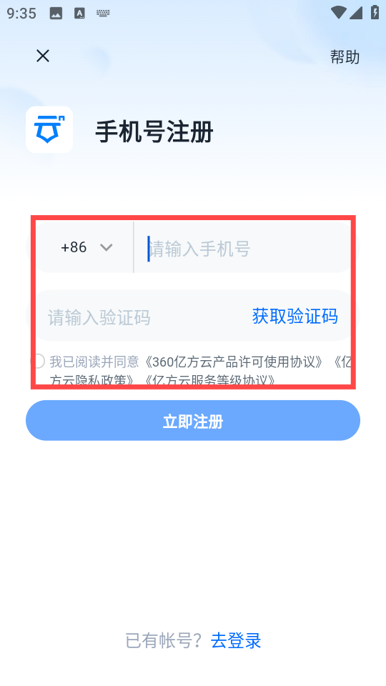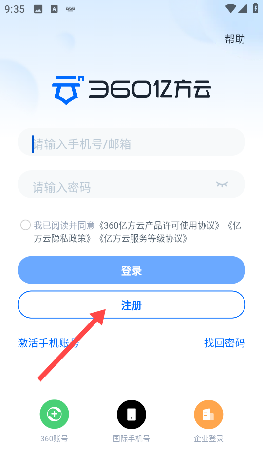 1、进入软件登录页面,点击【注册】按钮,进入注册流程。