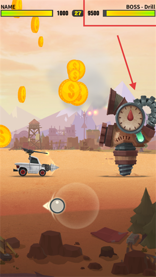 2、战斗时持续攻击【BOSS-Drill】,收集金币,留意自身与BOSS血量条调整战术。