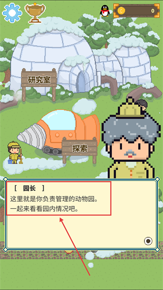 1、跟随园长引导熟悉动物园区域,找到研究室与探索入口,为后续解封动物的探险做准备。