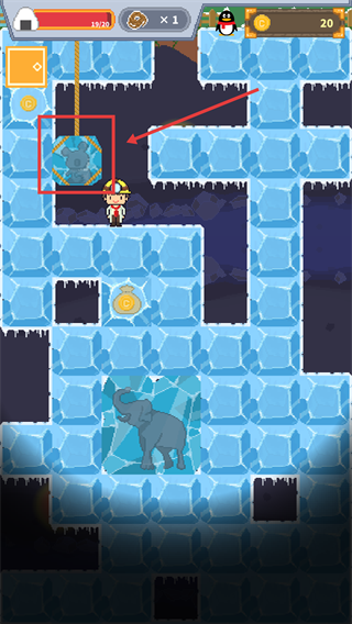 4、成功吊起冰中动物可获得金币奖励,继续探索冰面区域,发现并拯救更多被冰封的动物。