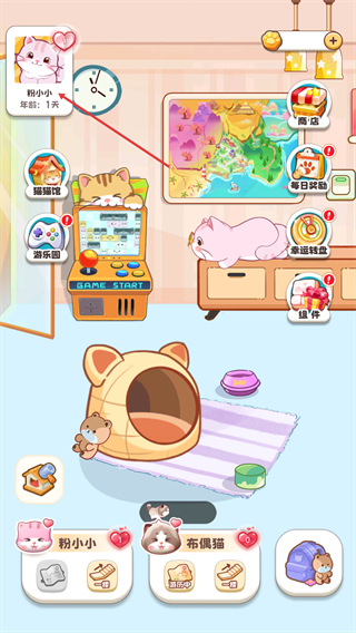 5、打造猫咪幸福小屋,收集超多家具来装扮猫咪房间,随时随地陪伴猫咪一起玩耍。