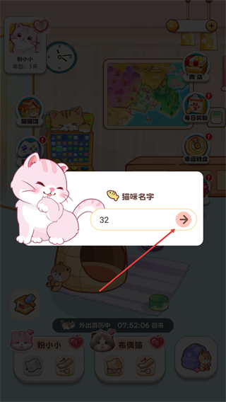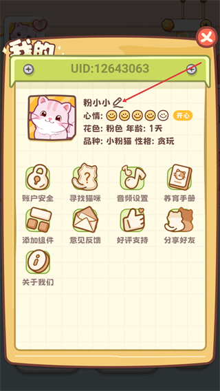 2、点击【粉小小】对应的名称区域,弹出用于修改的“猫咪名字”输入框。