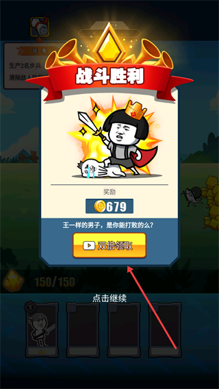 4、战斗胜利后,可选择【双倍领取】获取更多奖励,或点击继续进入后续流程,积累资源提升战力。