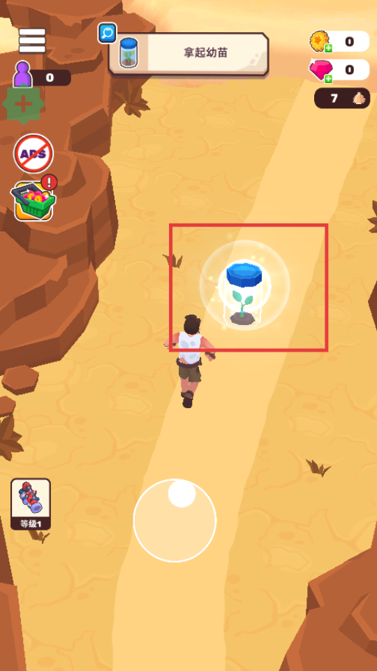 3、控制角色移动,获取幼苗,完成【拿起幼苗】的任务。