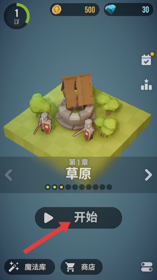 1、在游戏主界面,点击【开始】按钮,进入【第1章-草原】关卡。