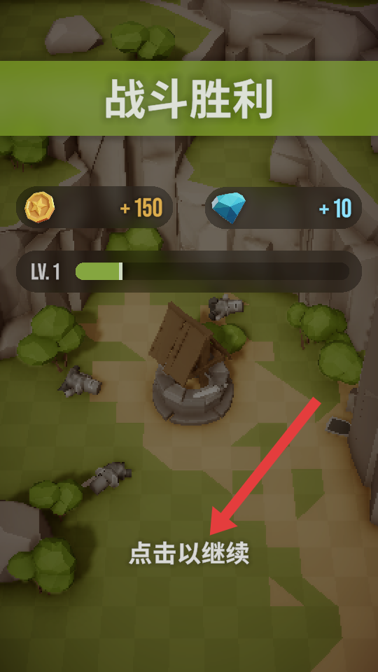 4、成功击败所有敌人后,显示【战斗胜利】,点击【点击以继续】按钮,前往下一个环节。