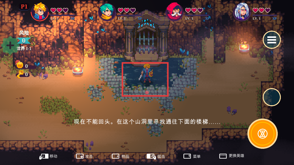 2、移动角色在山洞里寻找通往下面的楼梯,推进关卡进程。