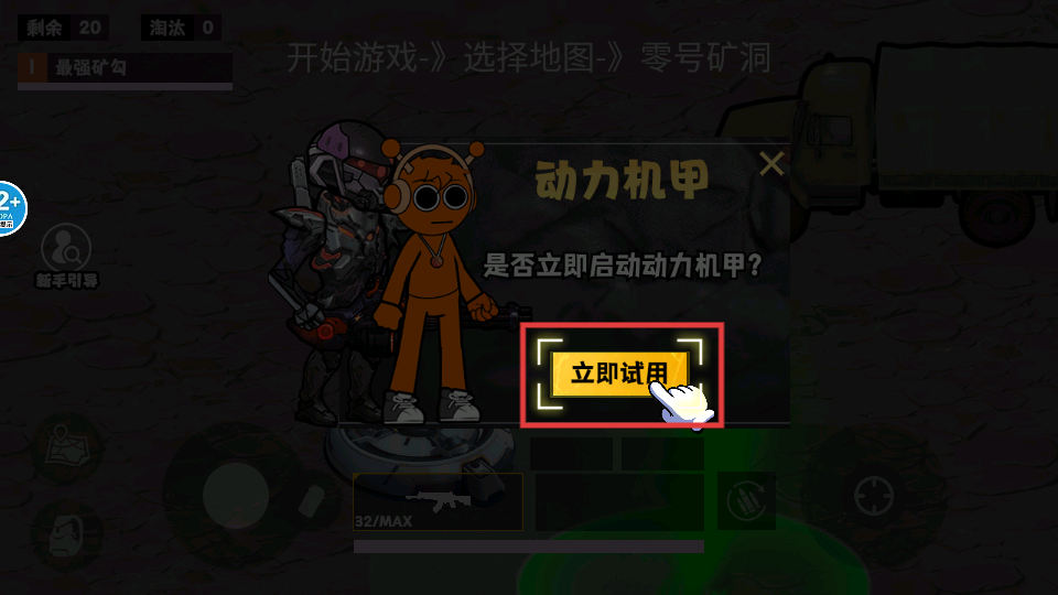 2、动力机甲试用弹窗出现时,点击【立即试用】,借机甲战力加成,助力战场作战。