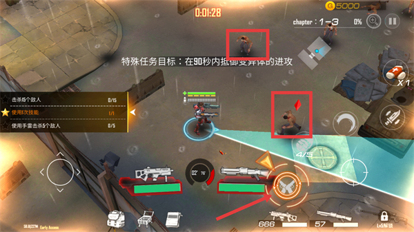 2、在【chapter-1-3】关卡中,瞄准红色框内的特殊丧尸,切换枪械精准打击,完成特殊任务目标。