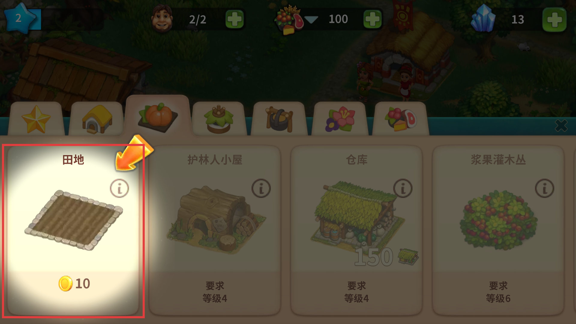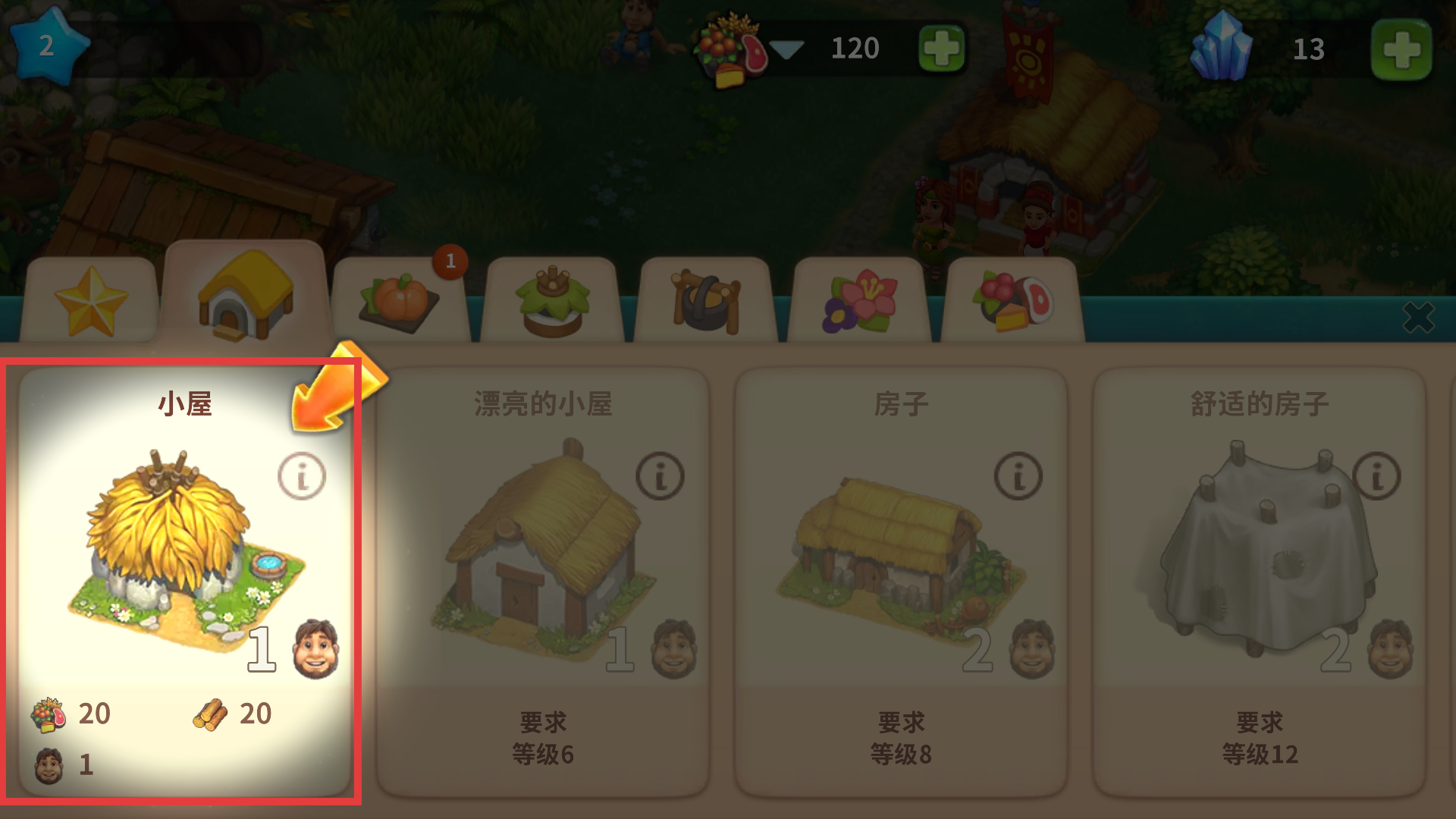 3、升级小屋增加人员入住与收入,种植食物保障供给,为部落壮大奠定经济基础。