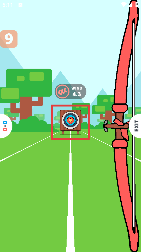3、滑动屏幕调整射箭角度与力度,同时留意【WIND-4.3】的风力数值,确保精准射中靶心。