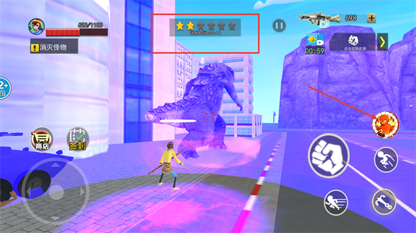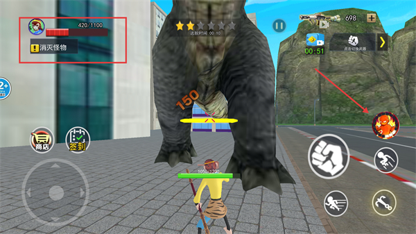 2、战斗中关注星级评价进度,并且使用技能对怪兽,箭头标注可查看技能使用时间。