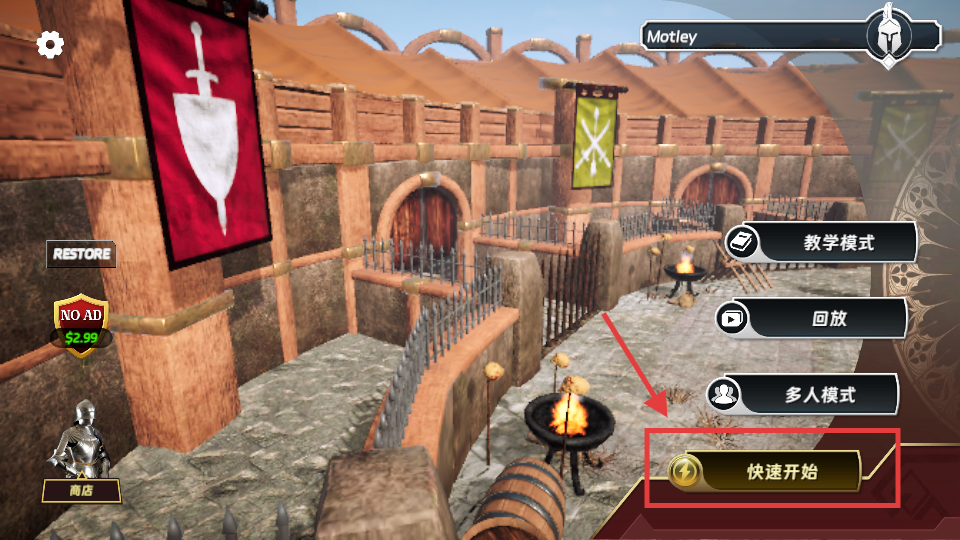 1、游戏主界面中选择快速开始,即可直接进入中世纪角斗场展开对战,无需复杂操作快速开启格斗体验。