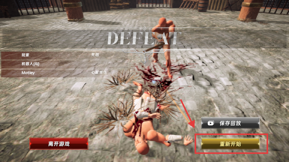 4、若战斗失败,可选择重新开始挑战,总结之前的失误,调整战斗技巧再次对阵强敌,提升自己的格斗水平。