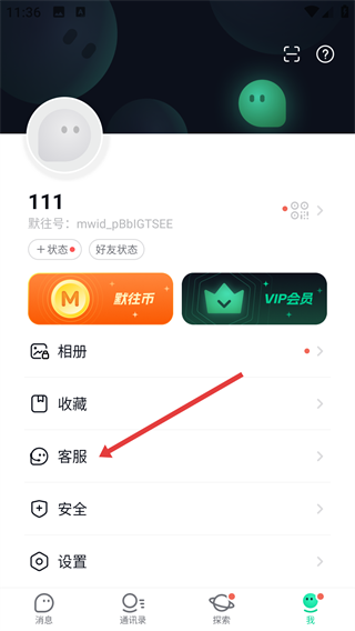 2、在【我】的页面中找到【客服】选项,点击它就能进入客服服务界面啦。