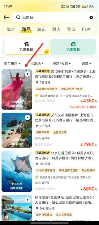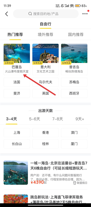 2、进入页面后,我们可以选择【巴厘岛】这类热门目的地选项呀。