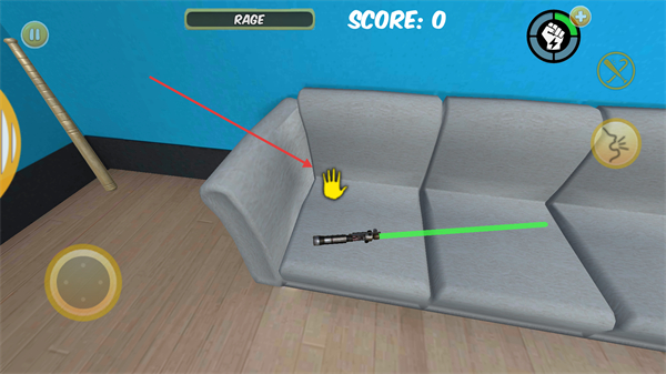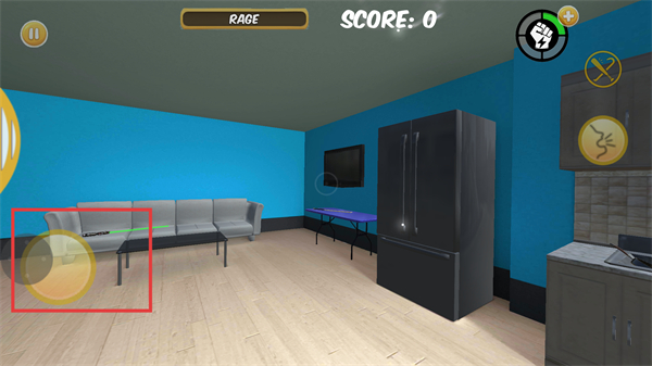 2、在室内场景中,利用移动按钮控制角色移动,探索场景内的物品,为破坏行为做准备。