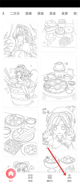 1、打开【趣贴图】软件,点击右下方【我的】按键,进入个人主页哦。