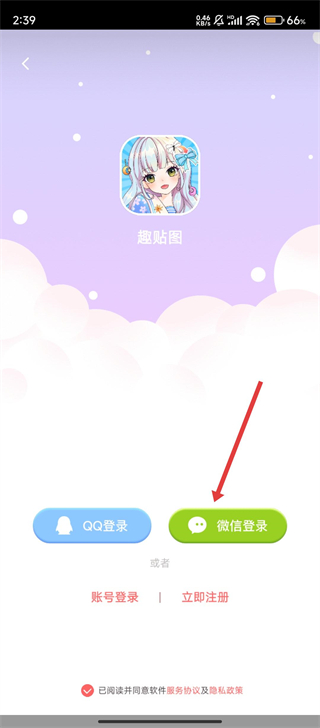 3、先勾选【已阅读并同意软件服务协议及隐私政策】选项,做好登录准备。