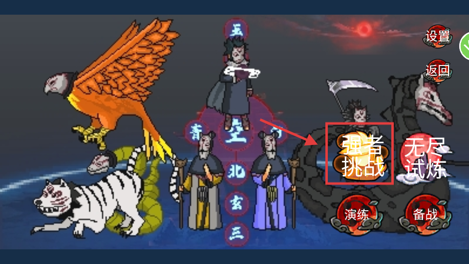 2、在模式选择界面,选择【强者挑战】模式,进入高难度战斗场景,面对更强敌人,提升自身格斗能力与反应。