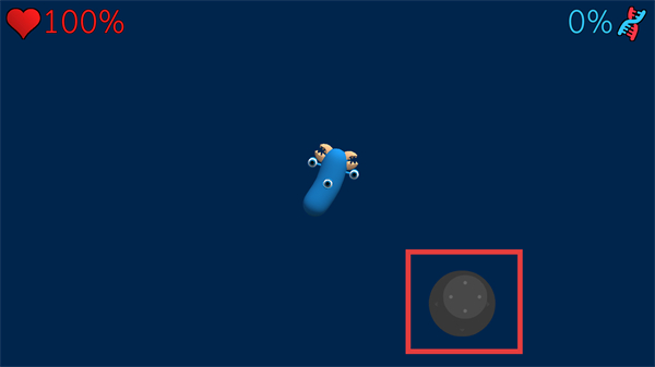 2、进入关卡后,使用方框内【虚拟按键】操控生物移动。