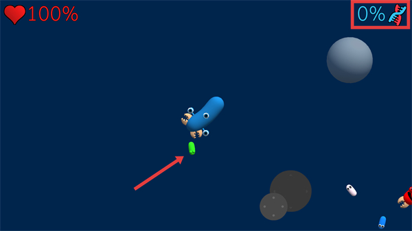 3、移动生物触碰绿色资源,积累进化所需的【DNA】进度,同时避开其他生物的干扰。
