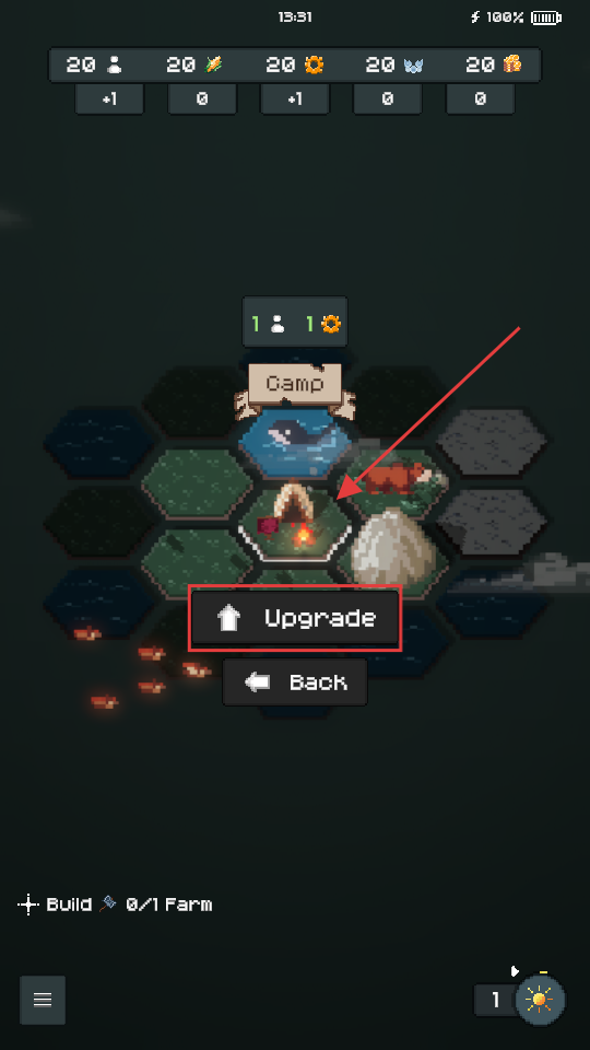 3、点击营地旁的【Upgrade】按钮,消耗对应资源提升营地等级,增强部落的生存能力和发展空间。