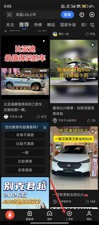 1、打开易车,点击底部【二手车】,进入二手车板块,选车更有针对性哦。