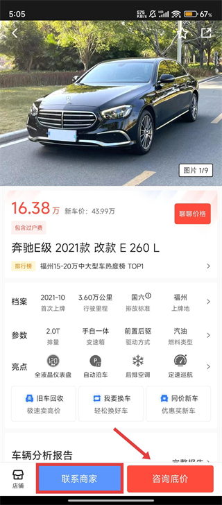 4、进入车型详情页,点击【咨询底价】或【联系商家】,与商家沟通,为购车做好准备啦。
