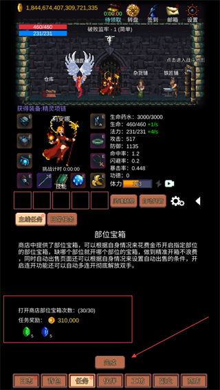 3、完成部位宝箱开启任务后点击领取奖励,可获得金币与宝石助力后续装备收集与强化。