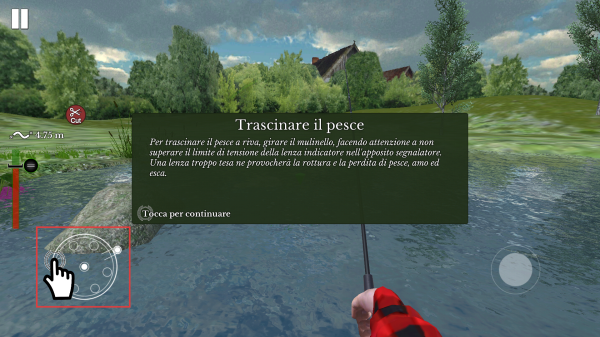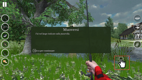 2、按提示移动到草地的指示位置,点击继续,推进钓鱼流程的下一步。