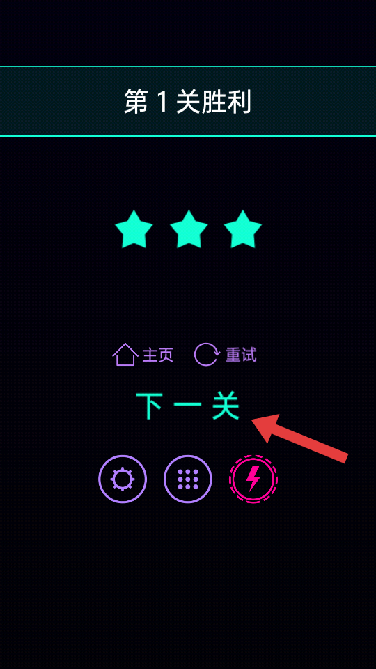 4、成功完成关卡出现【第1关胜利】后,点击【下一关】按钮,挑战后续关卡。