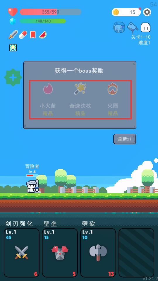 4、击败Boss后,领取【小火苗】【奇迹法杖】【火圈】等精品奖励,提升角色实力。