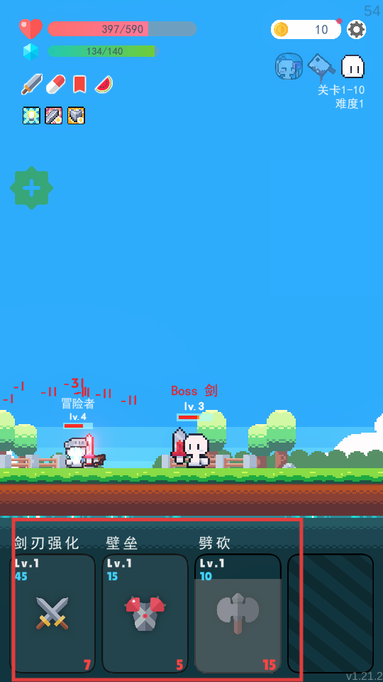 3、在战斗中运用剑刃强化、壁垒、劈砍等技能,对抗Boss剑,推进战斗进程。