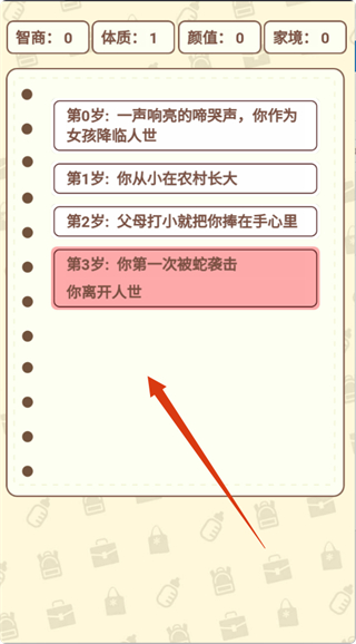 2、在人生历程中,留意各阶段事件,面对危险事件时,结合属性判断应对,积累人生经验。