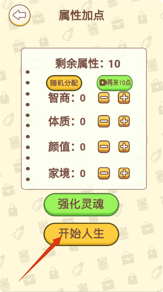 3、进行【属性加点】时,合理分配剩余属性点,提升关键属性,为开始人生做好准备。