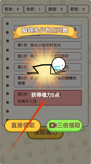 4、人生结束后,领取【魂力】奖励,用于强化灵魂或属性加点,助力后续人生挑战。