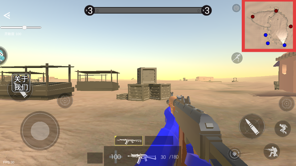 2、进入游戏场景后,留意【红框内】的地图,通过地图了解敌人和队友的位置分布。